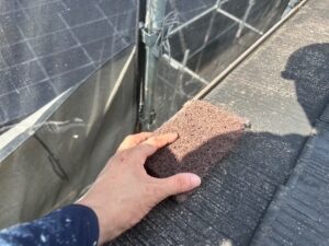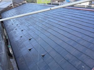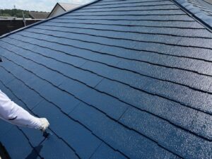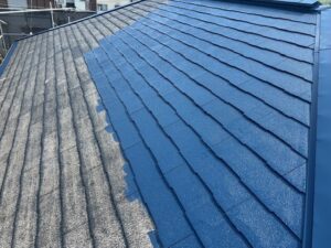 本日の作業内容は養生作業と洗浄ではどうしても落としきれないコケなどをケレンして屋根のシーラー進めました。軒天と破風の木部の吸い込み止めの下塗りも完了です。明日は屋根の中塗り、上塗り、外壁の下塗りなど予定しております。引き続きよろしくお願いいたします。またアップします。