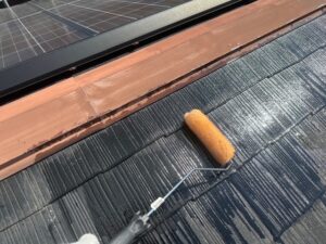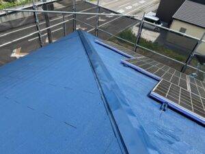 今日は屋根の中塗り、上塗りを進めました。ナスコン色です。素敵な色ですね。外壁の下塗りも進めました。明日も引き続きよろしくお願いいたします。またアップします。