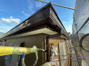本日の作業内容は付帯部の塗装です。色は日本ペイント標準色の23-255です。濃いめの茶色で付帯部に良く使用します。外壁色ともマッチして素敵ですね。明日も引き続きよろしくお願いいたします。またアップします。