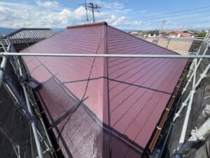 微妙な天気が続き上塗りができていなかった屋根と外壁の上塗り本日完了しました。明日からは付帯部の塗装です。明日には窓の養生など取れますので長い間ご不便おかけしました。引き続きよろしくお願いいたします。またアップします。