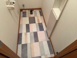 本日はトレイの交換工事をさせて頂きました。クッションフロアも交換済みです。Kさま大変お世話になりありがとうございます。今後ともお家のお困りごとはアイホームにお任せください。