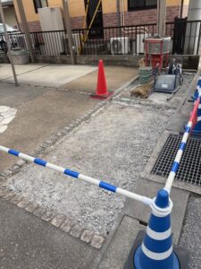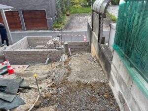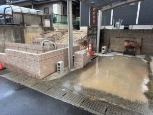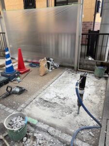 洗い出しが浮いてしまっていたので洗い出しの撤去とその下地も撤去しました。明日はこの上に土間打設工事を行います。引き続きよろしくお願いいたします。またアップします。