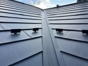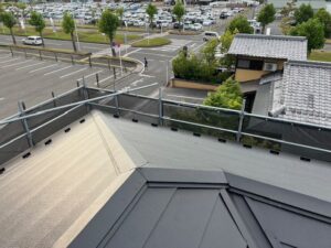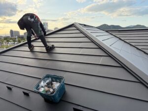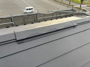 Tさま邸の今日の作業内容は棟板金、換気棟、谷板金、集水器カバー、タッチアップを行いました。これでスーパーガルテクトの施工完了です。土曜に足場解体予定です。またアップします。