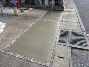 Kさま邸、土間工事完了です。昨日に斫った箇所を転圧整地してメッシュを仕込んで土間施工行いました。明日から1週間ほど乾燥させたら完了です。またアップします。