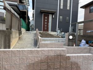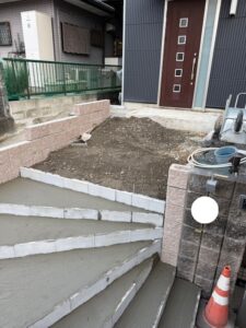 今日の作業内容は昨日積み上げたブロックにモルタルを施工していきました。階段が積まれると全容がイメージ湧きやすくなってきました。引き続きよろしくお願いいたします。またアップします。