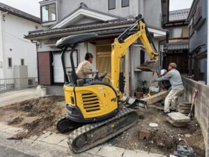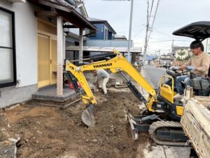 今日からスタートしましたTさま邸の外構工事の様子です。本日の作業は掘削や残土処分です。明日も引き続きよろしくお願いいたします。またアップします。
