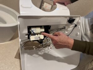 本日の作業内容はリクシルのトイレのメンテナンスです。自動開閉の不具合でメーカー修理を依頼しました。外灯部品を交換し問題なく作動することを確認しました。保証期間内だったので無償での修理となりました。アイホームはアフターメンテナスもしっかりしておりますので安心してください。Hさま大変お世話になりありがとうございます。