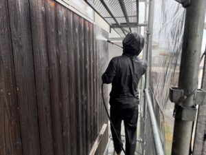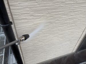 本日の作業内容は高圧洗浄です。隅々までしっかり洗浄しました。明日はコーキング工事に入っていきます。引き続きよろしくお願いいたします。またアップします。