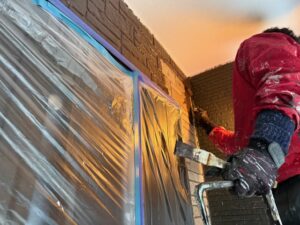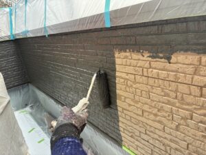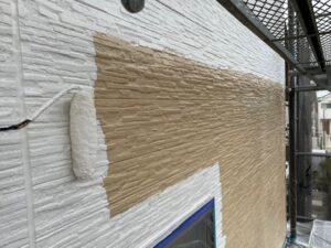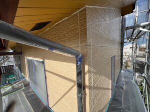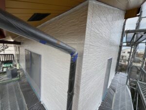 本日の作業内容は外壁の下塗り(ファインパーフェクトシーラー)、外壁の中塗り(グランセラトップ1液水性)、破風の2回塗り(キシラデコールコンゾラン)で進めました。明日も引き続きよろしくお願いいたします。またアップします。