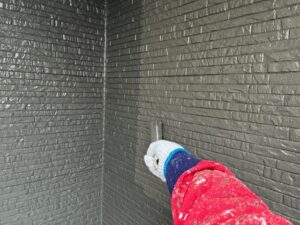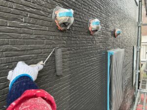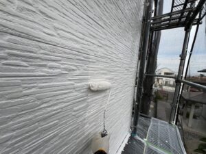 外壁の上塗り工事の様子です。白系で綺麗な色です。明日はサイディング部の養生をめくり、その後に焼き板塗装も進める予定です。引き続きよろしくお願いいたします。またアップします。