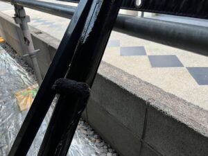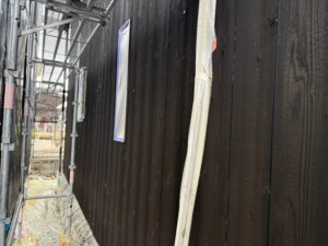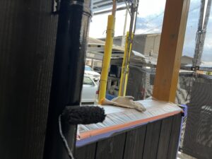 細かな手直しはありますが外壁の焼き板部分の上塗り完了までしました。少し時間ありましたので竪樋やスリムダクト塗装の1回目も進めました。明日も引き続きよろしくお願いいたします。またアップします。