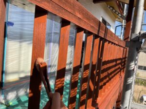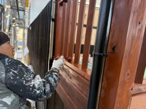 本日の作業内容はベランダ部分の塗装2回目を進めました。焼き板部分は吸い込みが多い面では4回塗りさせて頂きました。綺麗に仕上がったと思います。明日も引き続きよろしくお願いいたします。またアップします。