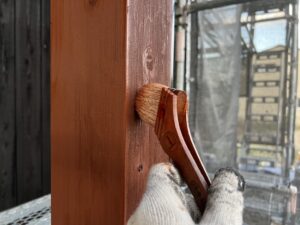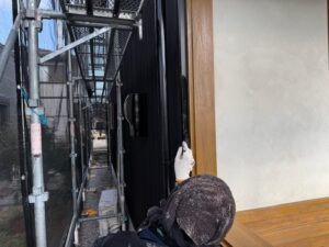本日の作業内容は裏面の焼き板の3回目の塗装とベランダ部の3回目の塗装と付帯部の塗装を進めました。1階部分の窓養生も撤去しました。明日も引き続きよろしくお願いいたします。またアップします。