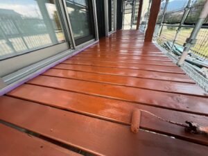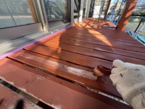 本日の作業内容はベランダ床の3回塗りとウッドデッキ3回塗りを行いました。いよいよ作業も終盤になってきました。明日からは手直しなど細かくチェックしていきます。引き続きよろしくお願いいたします。またアップします。