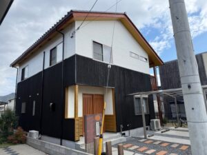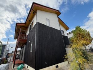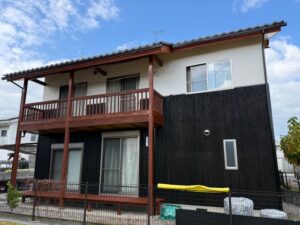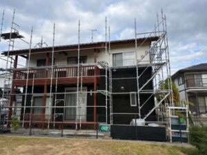 Hさま邸の足場解体完了しました。本当に素敵な仕上がりです。カッコいい色合いで木の風合いも良い感じです。明日はウッドデッキの手直しやカーポートパネルの復旧工事を行います。引き続きよろしくお願いいたします。またアップします。