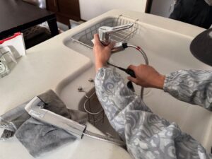 水栓の交換工事をさせて頂きました。浄水器のタイプでシャワーヘッドが伸びるので便利ですね。Uさま大変お世話になりありがとうございます。今後ともお家のお困りごとはアイホームにお任せください。