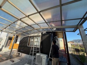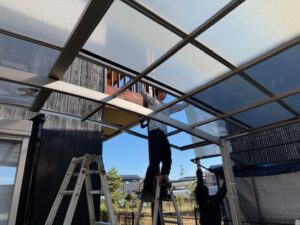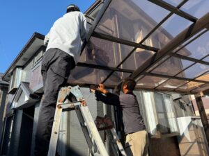 本日の作業内容はカーポートパネルの復旧と物置移動とカーポートに元々付属しているはずのパッキンが入っていなかったのでパッキン挿入とベランダに壁付け物干しを設置を行いました。これでHさま邸、完工となります。大変お世話になりありがとうございました。数ある塗装店からアイホームを選んで頂き誠にありがとうございます。今後ともお家のお困りごとはアイホームにお任せください。