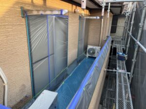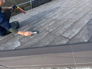 工程表では明日からスタート予定でしたが他現場が早くキリが付きましたので午後から作業させて頂きました。屋根のカラーベストのクラック補修やタスペーサー挿入、養生作業など進めました。明日も引き続き養生作業です。よろしくお願いいたします。またアップします。