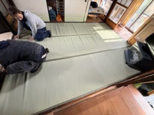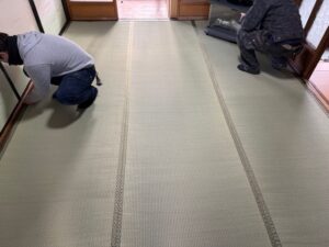 本日の作業内容はロールカーテンとカーテン設置と上敷きの交換を行いました。カーテンは採寸行い特注で作らせて頂きました。上敷きもイグサの良い匂いがしてました。明日は畳交換の仕上げです。引き続きよろしくお願いいたします。またアップします。