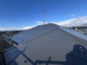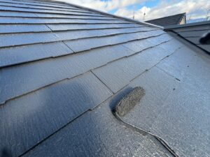 本日の作業内容は屋根の上塗り作業です。余った時間に養生も仕上げました。明日から外壁の下塗りです。順調に進めば軒天も塗装していきます。引き続きよろしくお願いいたします。またアップします。