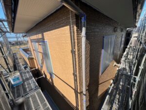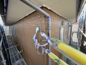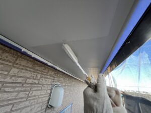 本日の作業内容は外壁のシーラーと軒天の塗装です。外壁は少し痛みがあったのでファインパーフェクトシーラーで下地処理しました。軒天は2回塗り完了です。KN-87で仕上げております。引き続きよろしくお願いいたします。またアップします。