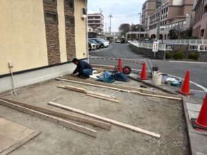 土間施工の前日の準備です。型枠やメッシュを仕込みました。今回は面積が多いので2回に分けて打設します。明日は両端の土間を打って数日後、乾いてから真ん中の土間を打設します。引き続きよろしくお願いいたします。またアップします。