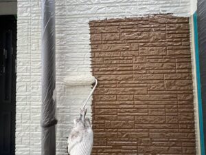 ポイント色とアクセント色の中塗りの様子です。ファインパーフェクトシーラーでしっかり下地処理しているので吸い込みも少ないです。明日は上塗りの予定です。引き続きよろしくお願いいたします。またアップします。
