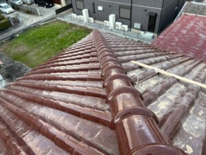 棟の積み替え工事の様子です。隅棟解体と強化棟取付と隅7寸丸ビス止め完了です。明日も引き続きよろしくお願いいたします。またアップします。