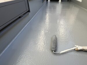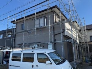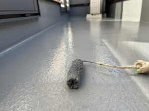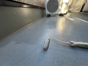 本日の作業内容はベランダのTOPコートを行いました。そのあと、検査実施し細かな点まで修正しました。風が強い現場でしたのでシートを全て撤去し後は足場解体を待つばかりです。また完成写真アップします。