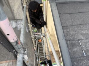 本日の作業内容は養生作業です。コーキングの乾燥具合の様子見ながら養生箇所も考えて進めております。明日も引き続きよろしくお願いいたします。またアップします。