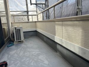 本日の作業内容はベランダ水切り上のサイディングが腐食していたのでモールの重ね張りで保護しました。サイディングの反りをビスで止め直し破損部は弾性パテで下地処理しました。コーキング工事も同時進行で古いコーキングの抜き取り作業を行いました。明日も引き続きよろしくお願いいたします。またアップします。