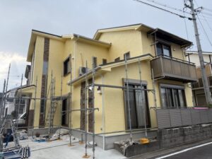 本日の作業内容は足場解体工事です。午後から3名で16時ごろには完了しました。明日は水切りや下屋根などの仕上げ予定です。いよいよ完成間近です。引き続きよろしくお願いいたします。またアップします。
