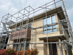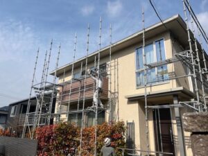 本日の作業内容は足場架設工事です。順調に進みお昼過ぎには完了しました。月曜日は高圧洗浄予定でしております。引き続きよろしくお願いいたします。またアップします。