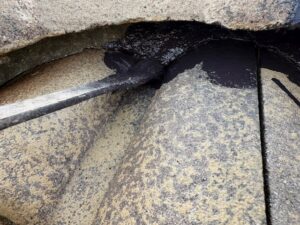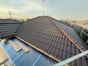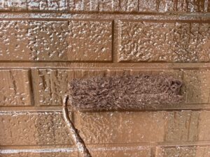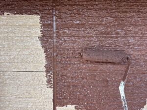 昨日シーラーが終わったので今日は屋根の中塗りを進めました。細かな部分までしっかり刷毛で塗りこみました。ファインパーフェクトベスト強化シーラーを2回塗布ししっかり下地処理しているので中塗りの状態でも吸い込みもなく綺麗に仕上がってます。月曜日に上塗りをかけて屋根は完成です。引き続きよろしくお願いいたします。またアップします。