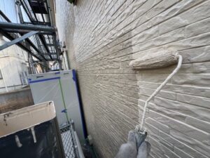 本日の作業内容はタスペーサー挿入と屋根のシーラー2回と外壁の中塗りまで進めました。明日は屋根の中塗りと軒天塗装予定です。引き続きよろしくお願いいたします。またアップします。