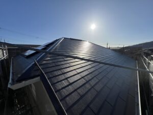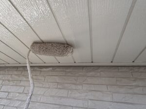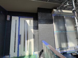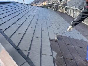 本日の作業内容は屋根の中塗りと軒天2回仕上げと外壁の上塗り作業を進めました。明日は屋根の上塗り予定です。引き続きよろしくお願いいたします。またアップします。