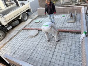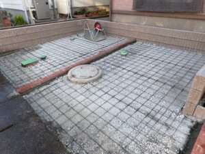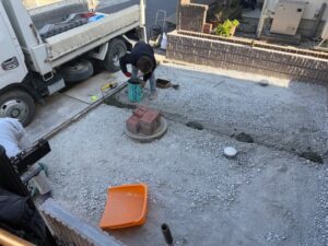 本日の作業内容は汚水桝の蓋の高さ調整と再生砕石敷きとレンガラインを行い最後にメッシュ仕込みました。週明けは天気良さそうなので土間施工させて頂きます。引き続きよろしくお願いいたします。またアップします。