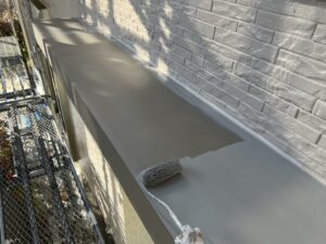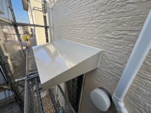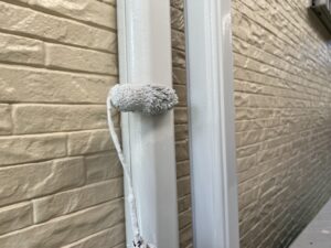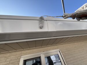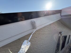 本日の作業内容は付帯部の塗装です。白部分は2回目塗装完了です。サッシ色に調色した部分は1回目です。良い感じの色に調色できてます。ベテラン職人の素晴らしい技です。あと二日くらいで工事完了できそうです。引き続きよろしくお願いいたします。またアップします。