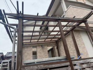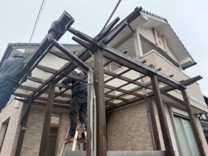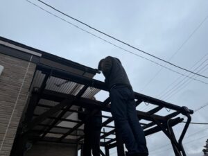明日から足場架設のSさま邸の波板撤去や物置移動を行いました。雨がきつく降っている時間帯の作業でしたので安全に注意して進めました。引き続きよろしくお願いいたします。またアップします。