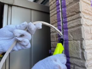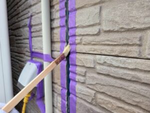 本日の作業内容はコーキング作業です。古いコーキングを抜き取りプライマー塗布して新しいコーキングを打設していきます。月曜日も引き続きコーキング作業となります。