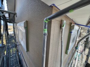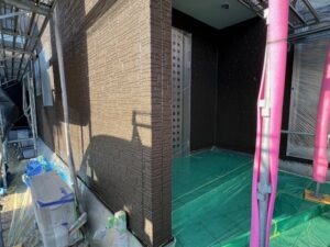 本日の作業内容は外壁の中塗り作業です。明日は上塗り作業に入っていきます。濃い茶系が綺麗ですね。引き続きよろしくお願いいたします。またアップします。
