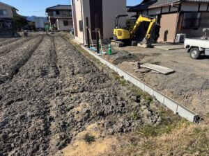 本日の作業内容はブロック積みです。土留め様に田んぼとの境界にブロック積みました。3日間養生して月曜日にCRを敷いて転圧していきます。火曜日にカーポート仕上げます。引き続きよろしくお願いいたします。またアップします。