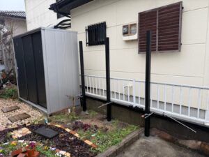 本日の施工内容はアーバンフェンスの工事です。雨が降ってきたので今日は柱の設置のみとなりました。明日続きでフェンス設置していきます。引き続きよろしくお願いいたします。またアップします。