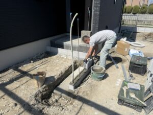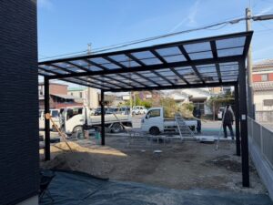 本日の作業内容は掃き出し窓のステップ下地と門塀下地と玄関ポーチタイルの追加下地とカーポートの仕上げを行いました。カーポートも大きなサイズでカッコいいです。敷地も広いのでバランスも良い感じです。引き続きよろしくお願いいたします。またアップします。