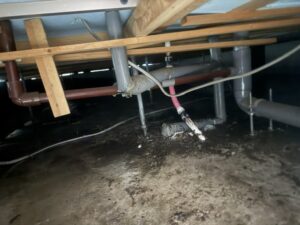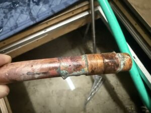 本日の作業内容はお湯配管の水漏れ補修工事をさせて頂きました。銅配管からお湯が漏れ出し基礎の下に11cmほど水が溜まっておりポンプで水を吸い出してから漏れている部分を特定し配管を部分交換させて頂きました。今回は床下収納から荷物を取り出す際にお客様が収納庫が浮いているのに気づかれて早い対処ができましたがなかなか微量の水漏れは気づきにくいですね。Zさま大変お世話になりありがとうございます。今後ともお家のお困りごとはアイホームまでよろしくお願い致します。